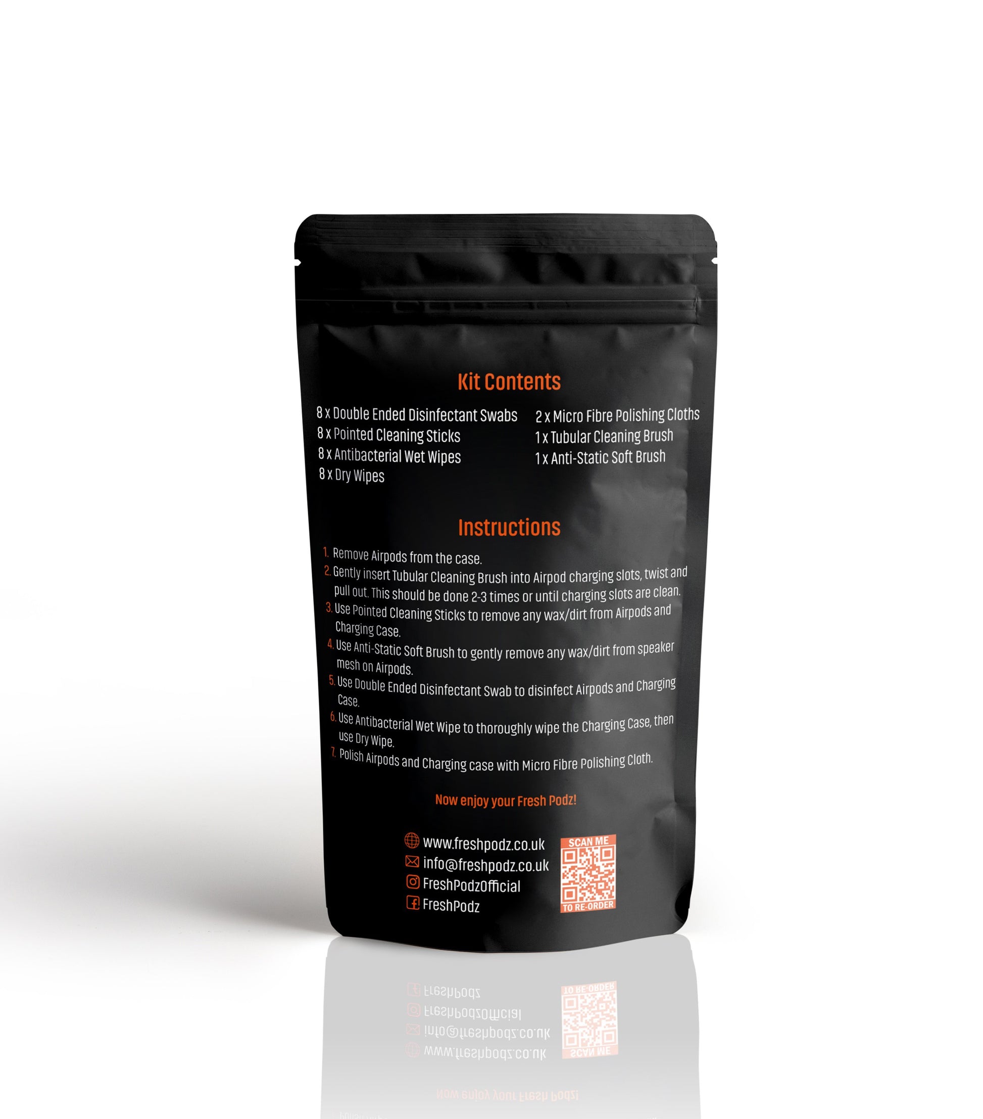 Each FreshPodz kit provides up to 8 full AirPods cleans.